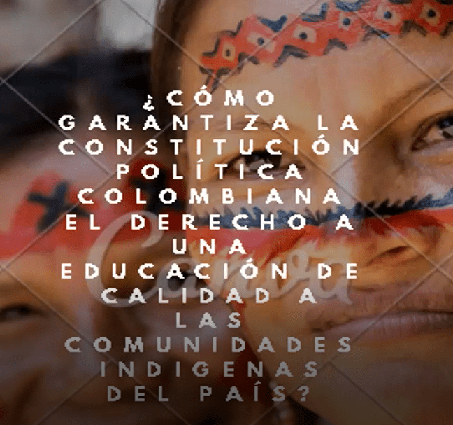 Estas son algunas realidades que enfrentan muchas comunidades indígenas en Colombia y que, desafortunadamente, se han evidenciado en las actuales condiciones en las que se desarrolla la educación hoy en día. Hace un tiempo atrás, se consolido en Colombia un movimiento indígena donde la educación fue vista como uno de los pilares principales para la conservación de la cultura. Por lo tanto, el CRIC en 1978, creó el Programa de Educación Bilingüe e Intercultural el cual hasta ahora no ha dejado de funcionar en el cumplimiento de sus metas. Es así como las condiciones del desarrollo educativo en las comunidades han logrado consolidación a nivel local, zonal y regional. Relacionando lo anterior mencionado con mi búsqueda intencionada, ¿cómo garantiza la constitución política colombiana el derecho a una educación de calidad a las comunidades indígenas del país? Esta pregunta es importante para mi campo profesional (bilingüismo con énfasis en Ingles) puesto que es esencial fomentar una educación multicultural en la cual exista una igualdad en el aprendizaje (todas las clases sociales, géneros, razas, culturas, etc.). Los estudiantes podrían venir de un sin número de culturas como es el caso de las comunidades indígenas, y por consiguiente, los docentes deben saber de esta diversidad. Y no es simplemente saberlo, pero crear respeto por la diversidad y diferencias étnicas en el salón de clases. Se trata de implementar estrategias que busquen acabar con la discriminación al valorar la diversidad. Adicionalmente, reflexionar sobre la actualidad educativa colombiana y la realidad de las comunidades indígenas. Apoyar los movimientos estudiantiles e indígenas para mejorar las condiciones educativas y así poder el Estado ofrecer una educación de calidad para todos, dejando de ser este un privilegio de pocos al convertirse en un derecho.